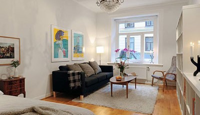3. Никак не отделять от гостиной свойскую спальню — заместо постели поставить раскладной диванчик, а все, что нужно упрятать, скрыть в нишах и шкафах-куче. Этот вариант может непревзойденно настать для экстравертов, у тот или иной вся жизнь немыслима без общения. Им нетрудно не нужен укромный уголок, а запрятывать от приятелей ничего.